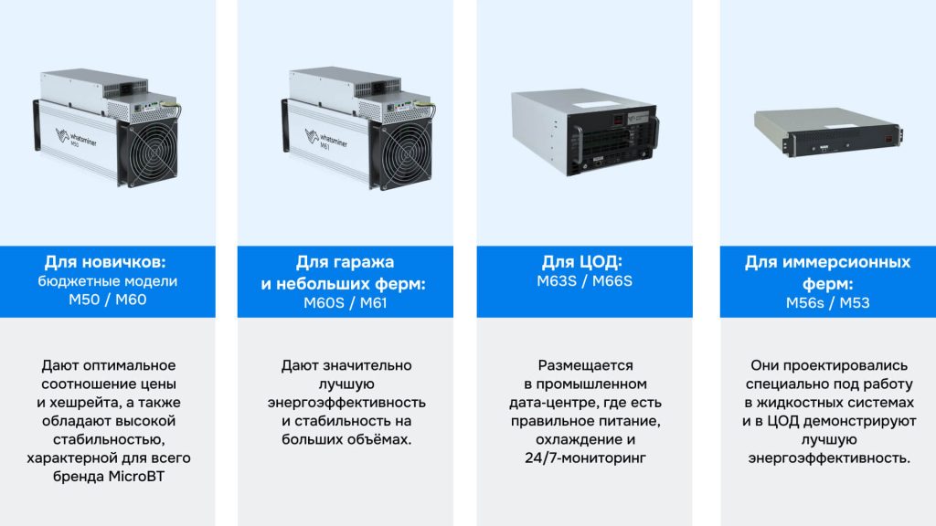 Каждая категория майнеров имеет разные потребности, и MicroBT предлагает оптимальные варианты для всех задач.