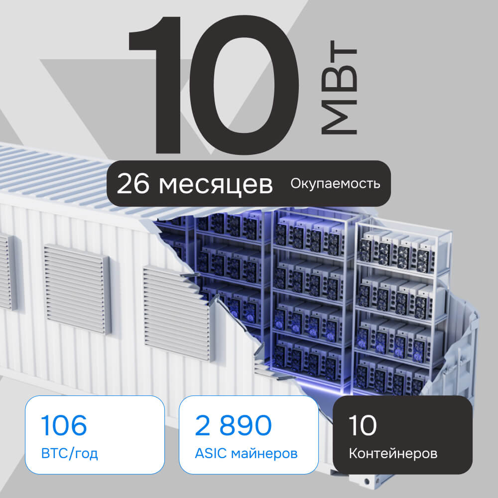 - Производим собственные контейнеры ЦОД, климатические и электрические модули, адаптированные под ASIC.