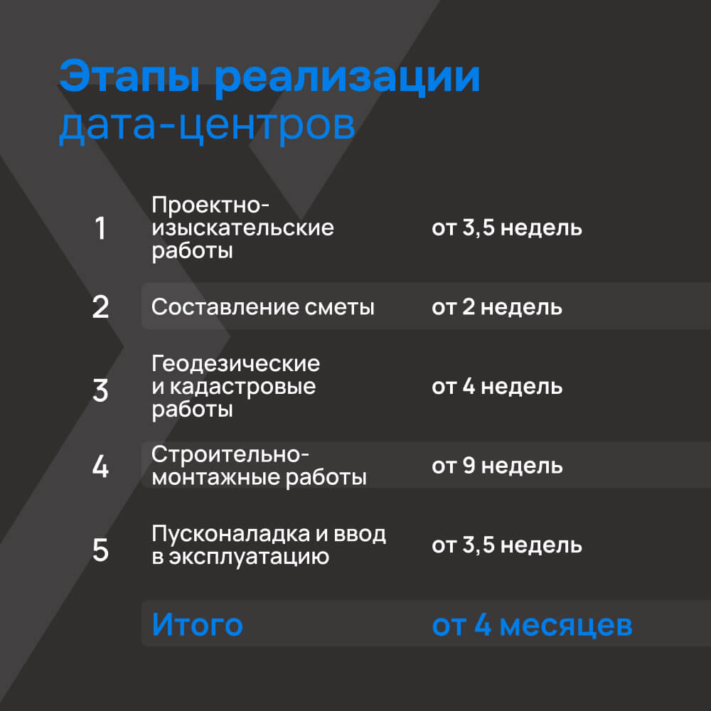Итог: дата-центр готов к запуску через 4 месяца.