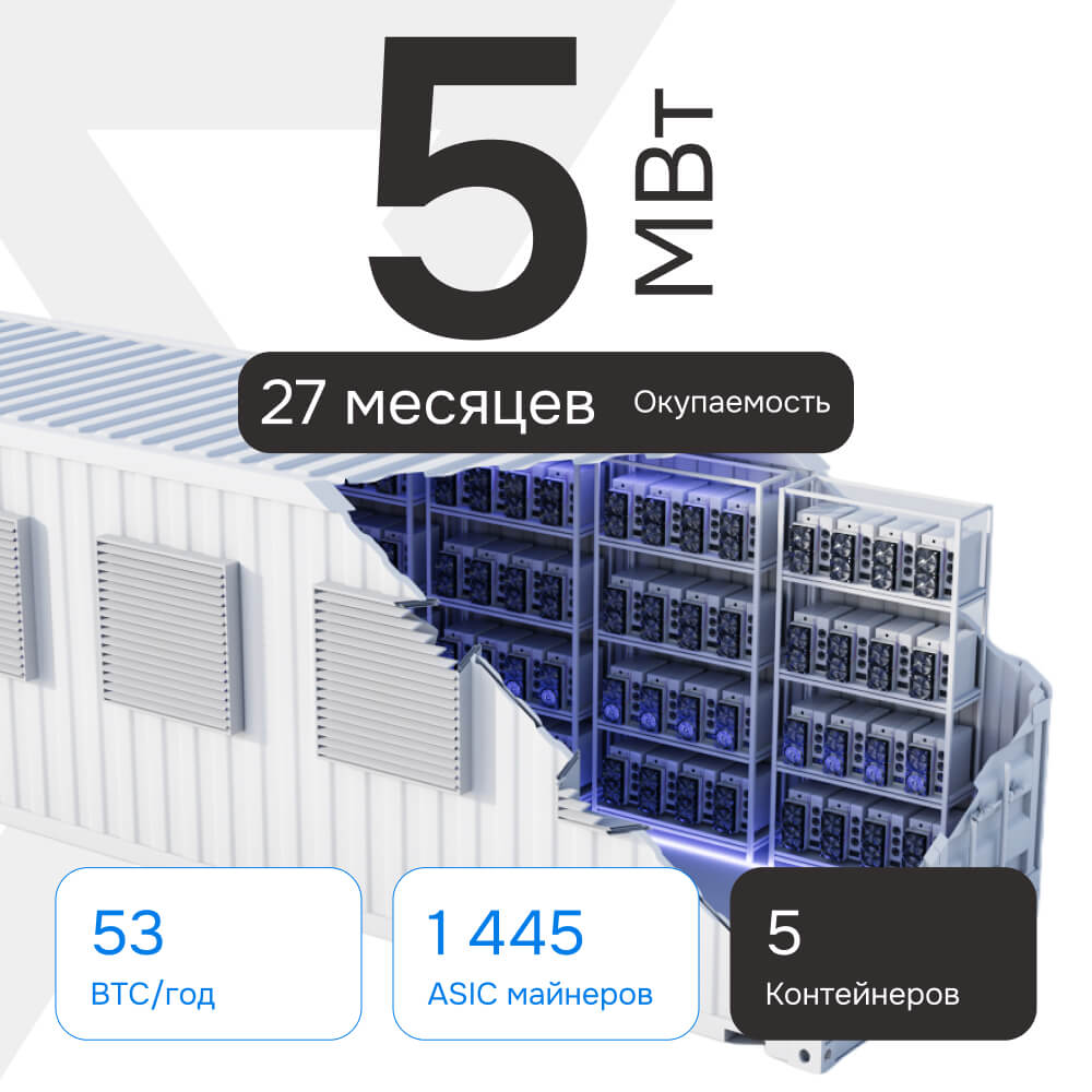 - Производим собственные контейнеры ЦОД, климатические и электрические модули, адаптированные под ASIC.